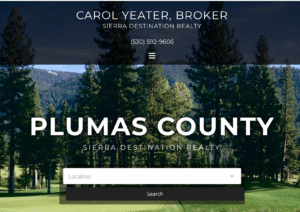 ![]() | Sierra Destination Realty | 323 Main Street | Clio | CA | 96106 | 530-592-9606 | https://www.sierradestinationrealty.com/ |